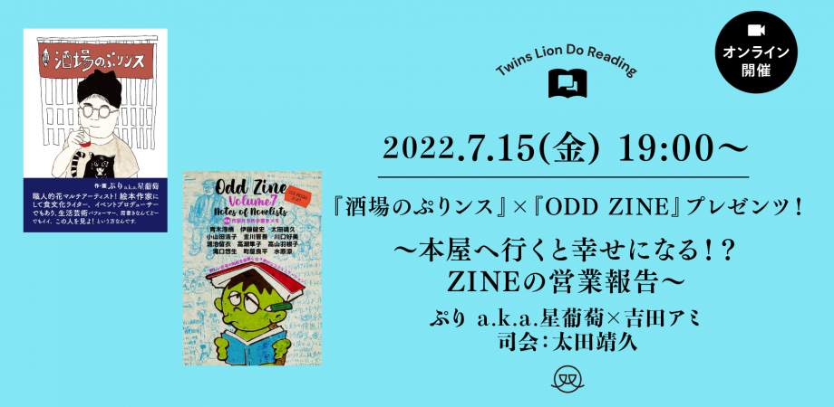 【配信イベント】2022/7/15(金)19:00〜 『酒場のぷりンス』×『ODD ZINE』プレゼンツ!〜本屋へ行くと幸せになる!?ZINEの営業報告〜